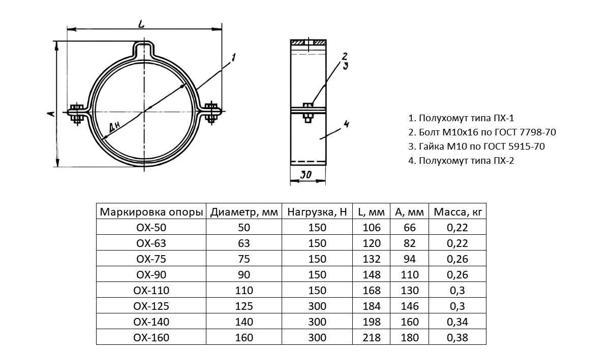 Опора ОХ-125 Ду 125 ОСТ 36-17-85 хомутовая
