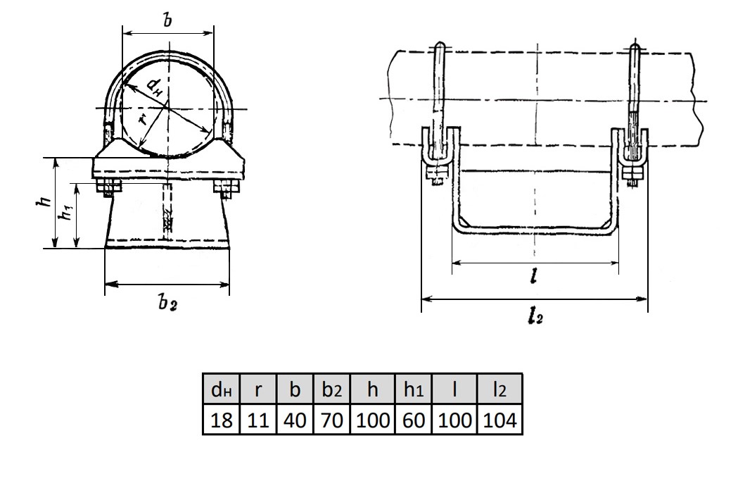 Опора ОПХ1-100.18 Ду 18 мм ГОСТ 14911-82 подвижная