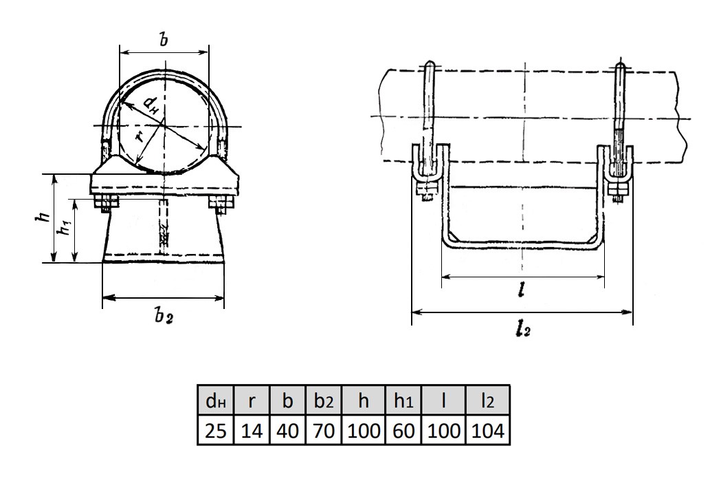Опора ОПХ1-100.25 Ду 25 мм ГОСТ 14911-82 подвижная