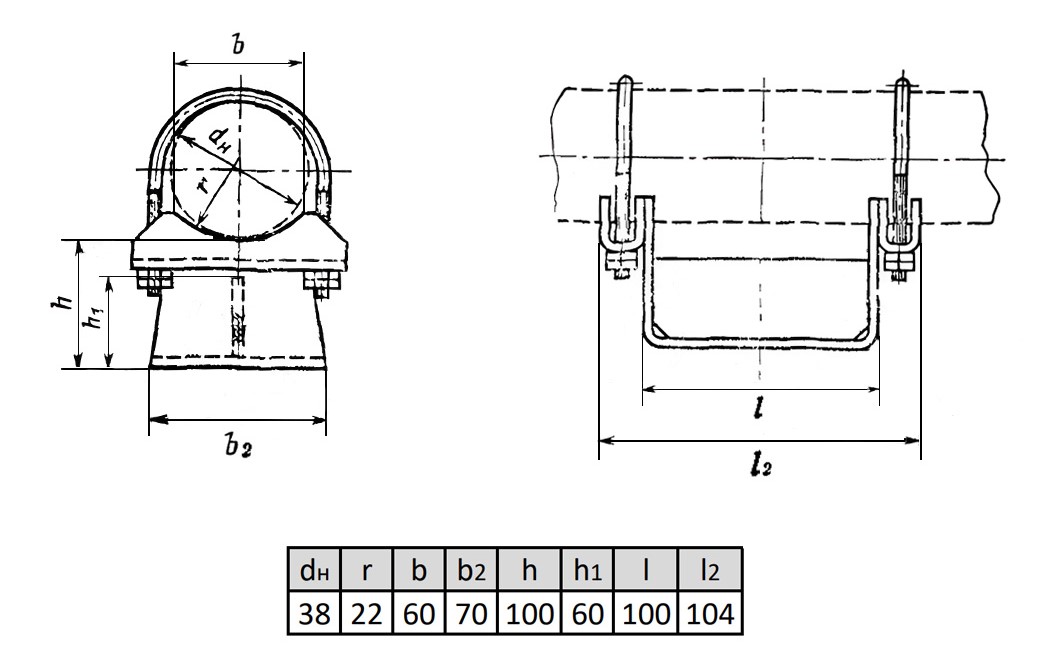 Опора ОПХ1-100.38 Ду 38 мм ГОСТ 14911-82 подвижная