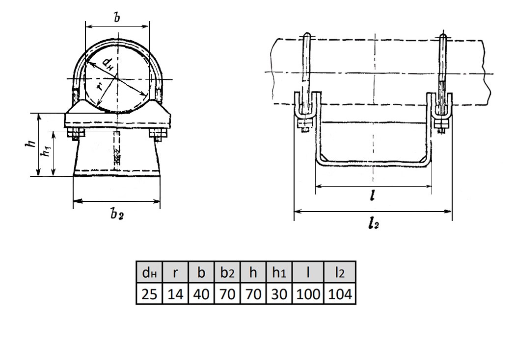 Опора ОПХ1-70.25 Ду 25 мм ГОСТ 14911-82 подвижная