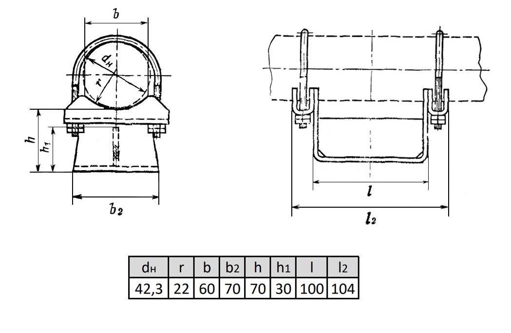 Опора ОПХ1-70.42,3 Ду 42,3 мм ГОСТ 14911-82 подвижная