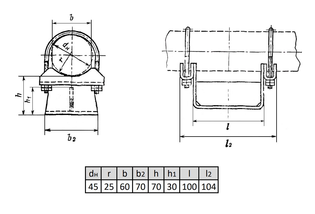Опора ОПХ1-70.45 Ду 45 мм ГОСТ 14911-82 подвижная