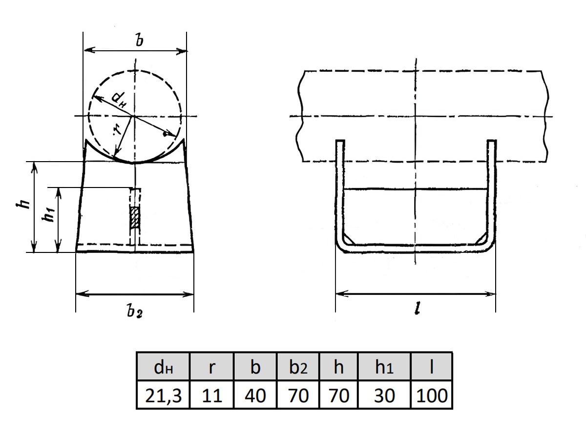 Опора ОПП1-70.21,3 Ду 21,3 мм ГОСТ 14911-82 подвижная