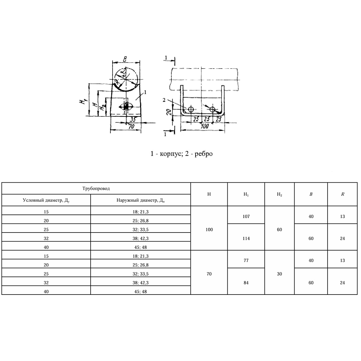 Опора ОПП1-70.21,3 Ду 21,3 мм ОСТ 36-94-83 подвижная