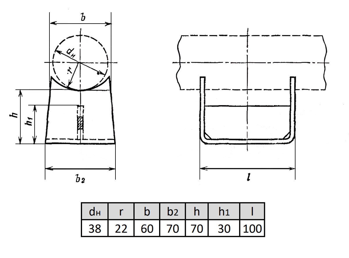 Опора ОПП1-70.38 Ду 38 мм ГОСТ 14911-82 подвижная