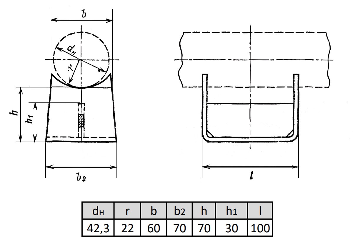 Опора ОПП1-70.42,3 Ду 42,3 мм ГОСТ 14911-82 подвижная