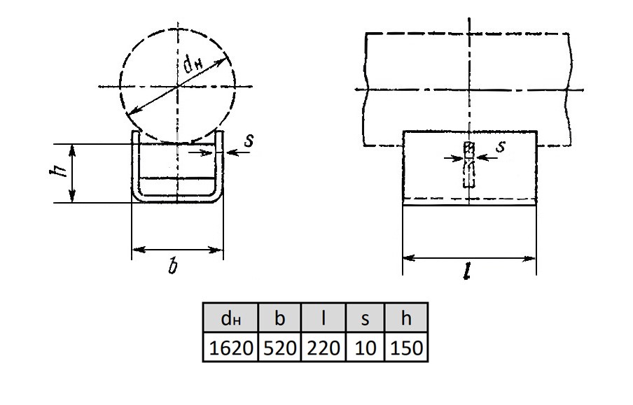 Опора ОПП2-150.1620 Ду 1620 мм ГОСТ 14911-82 подвижная