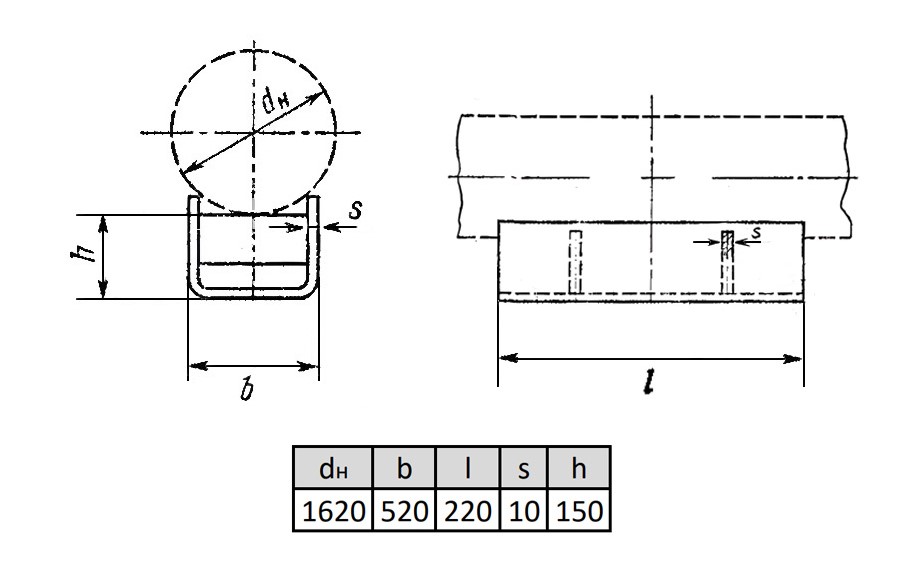 Опора ОПП3-150.1620 Ду 1620 мм ГОСТ 14911-82 подвижная