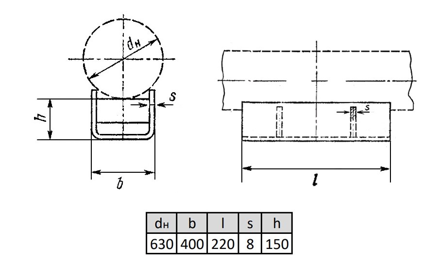 Опора ОПП3-150.630 Ду 630 мм ГОСТ 14911-82 подвижная