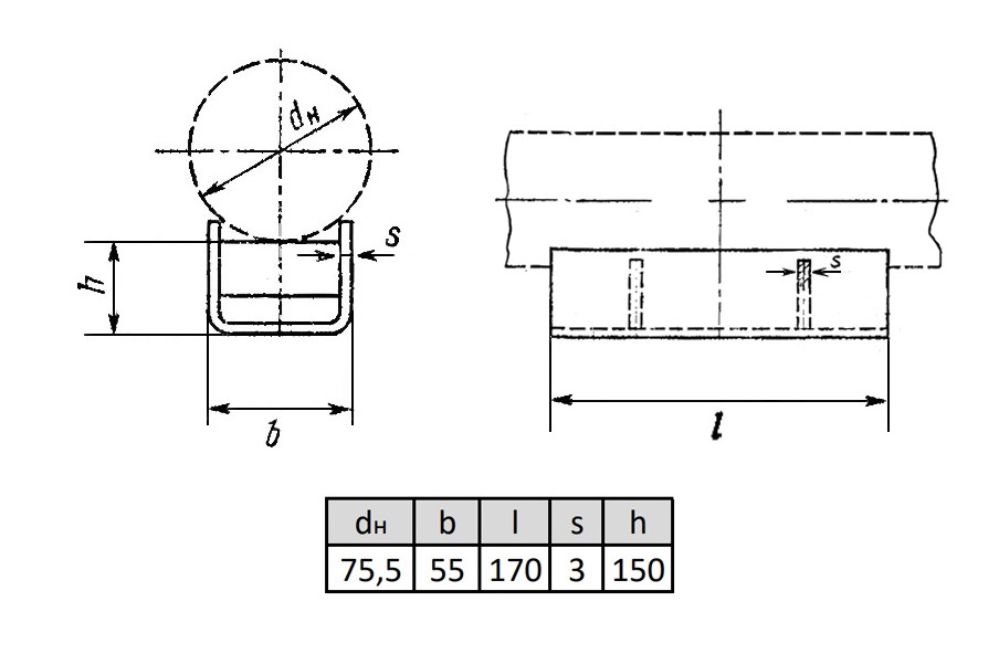 Опора ОПП3-150.75,5 Ду 75,5 мм ГОСТ 14911-82 подвижная