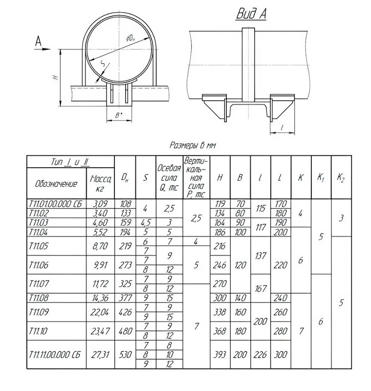 Опора Т11.10 Ду 480 мм Серия 4.903-10 выпуск 4 неподвижная хомутовая бескорпусная толщина стенки 7 мм