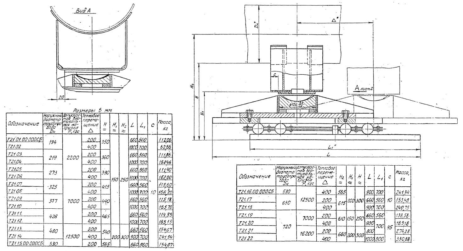 Опора Т21.15 Ду 530 мм Серия 4.903-10 выпуск 5 шариковая