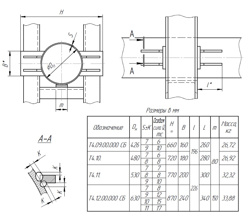 Опора Т4.09 Ду 426 мм Серия 4.903-10 выпуск 4 неподвижная лобовая двухупорная толщина стенки 9 мм