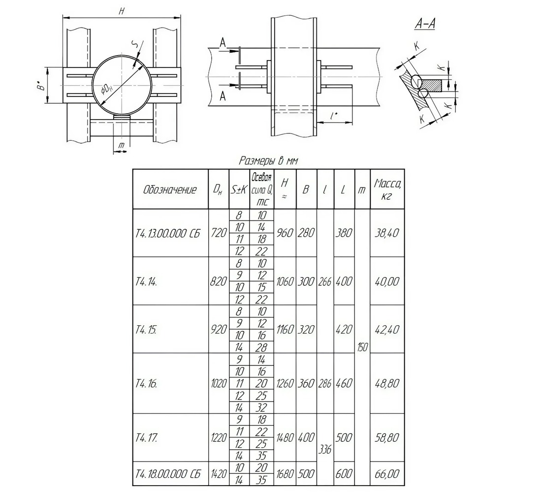 Опора Т4.15 Ду 920 мм Серия 4.903-10 выпуск 4 неподвижная лобовая двухупорная толщина стенки 8 мм