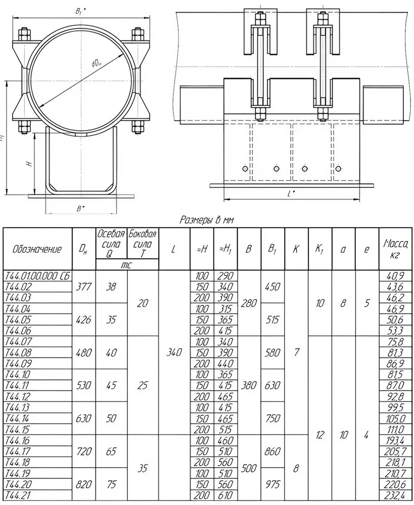 Опора Т44.03 Ду 377 мм Серия 4.903-10 выпуск 4 неподвижная бугельная