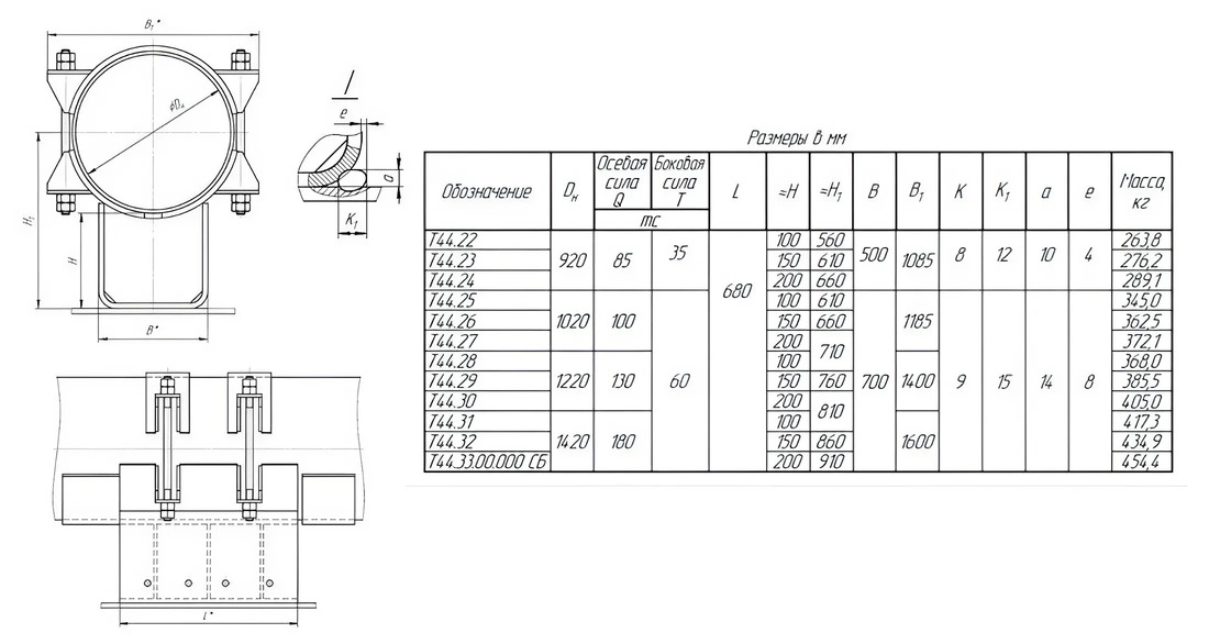 Опора Т44.25 Ду 1020 мм Серия 4.903-10 выпуск 4 неподвижная бугельная