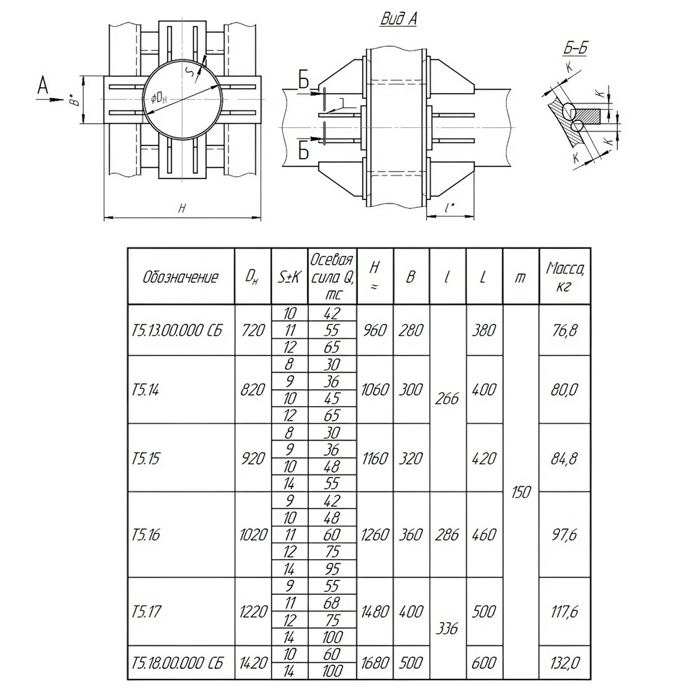 Опора Т5.14 Ду 820 мм Серия 4.903-10 выпуск 4 неподвижная лобовая четырехупорная толщина стенки 9 мм