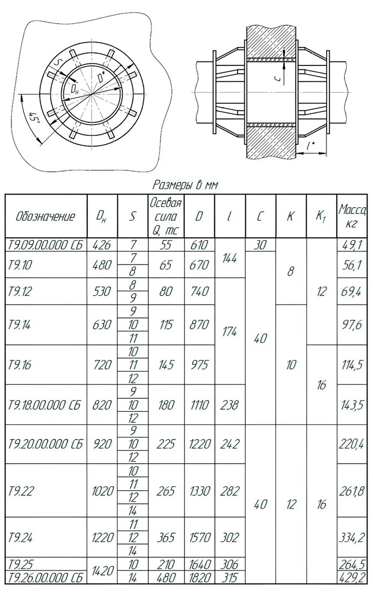 Опора Т9.22 Ду 1020 мм Серия 4.903-10 выпуск 4 неподвижная щитовая усиленная толщина стенки 10 мм