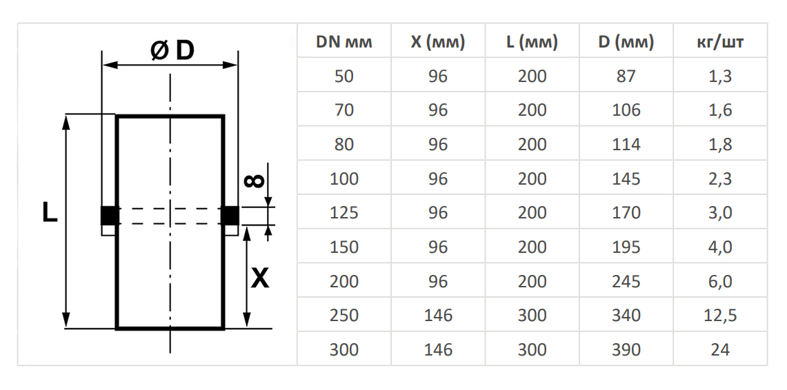 Опорная труба для стояков без опорного кольца SML DN 300 мм чугунная безраструбная