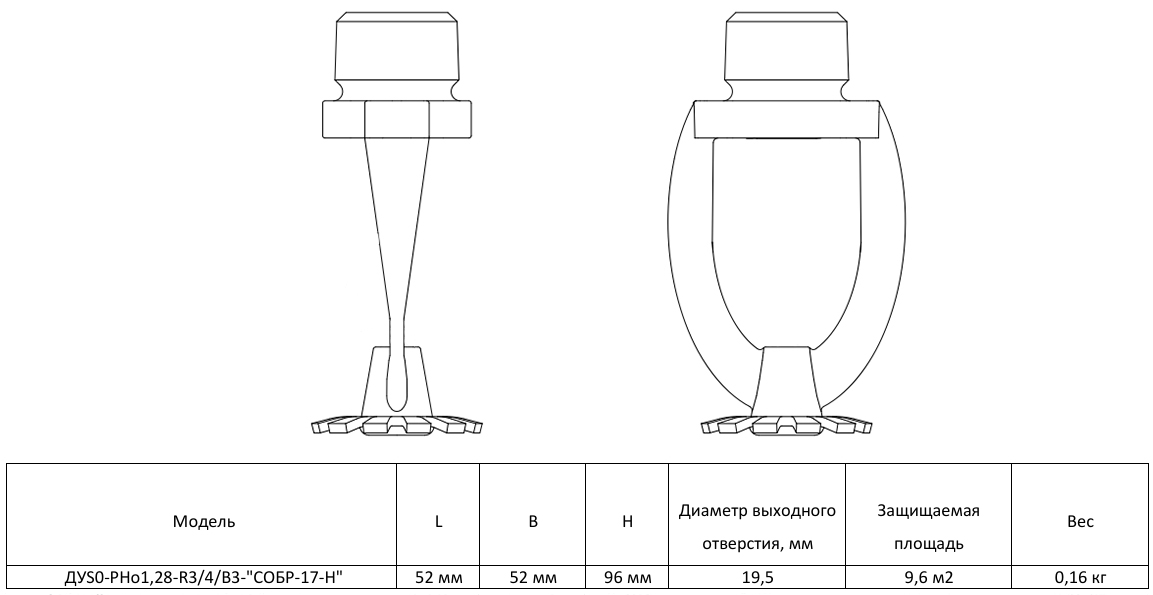 Ороситель дренчерный ДУS0-РНо1,28-R3/4/В3-"СОБР-17-Н" повышенной производительности