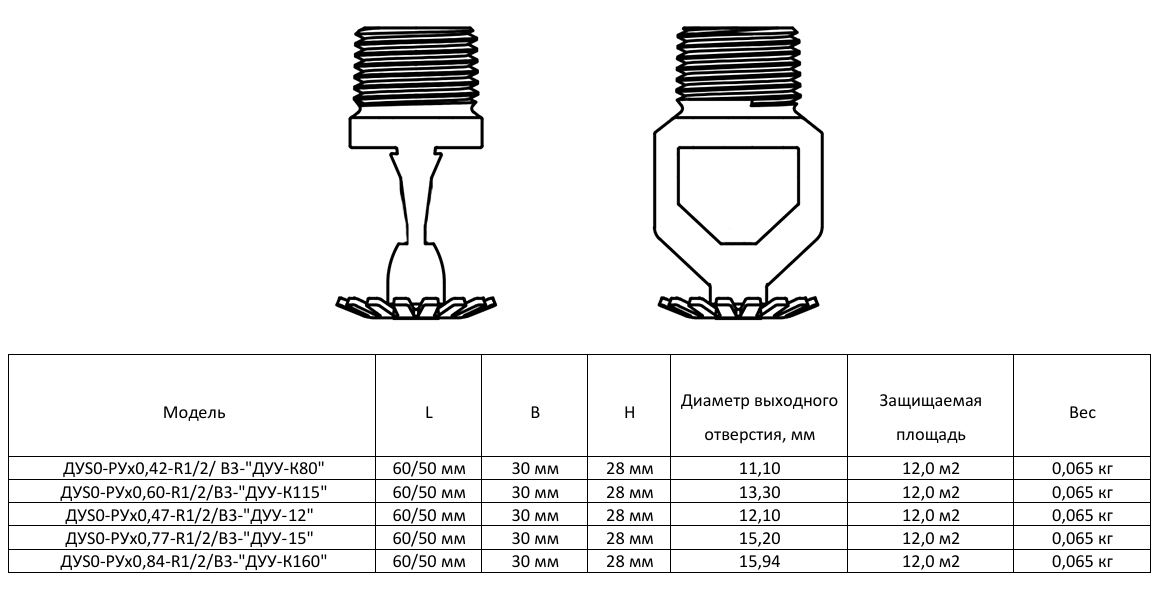 Ороситель дренчерный ДУS0-РУо0,84-R1/2/В3-"ДУУ-К160" водяной и пенный специальный универсальный с резьбовым герметиком