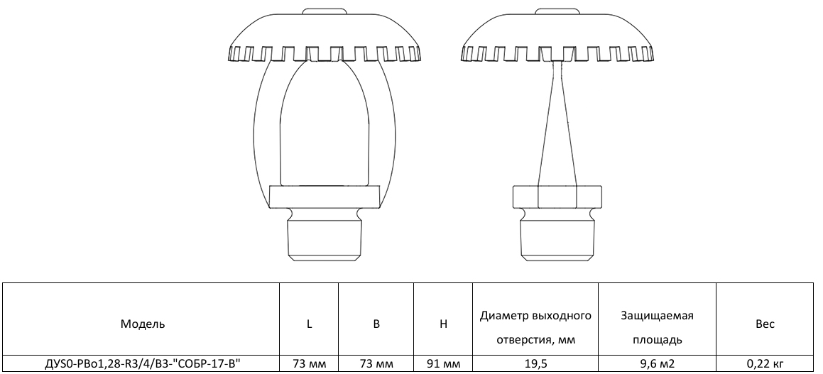 Ороситель дренчерный ДУS0-РВо1,28-R3/4/В3-"СОБР-17-В" повышенной производительности с резьбовым герметиком