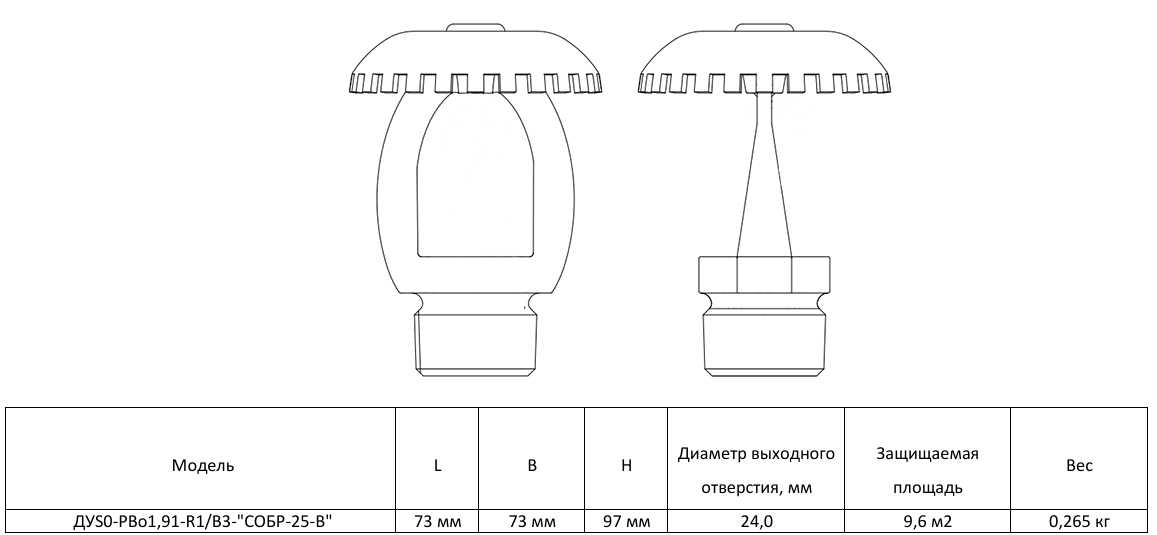 Ороситель дренчерный ДУS0-РВо1,91-R1/В3-"СОБР-25-В" повышенной производительности с резьбовым герметиком