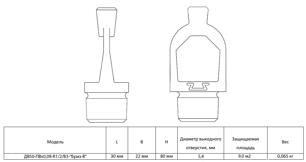 Ороситель дренчерный ДВS0-ПВо0,08-R1/2/В3-"Бриз-В" тонкораспыленной воды