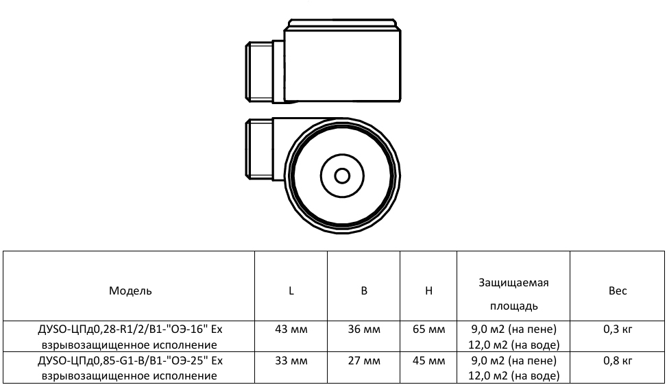 Ороситель эвольвентный ДУSО-ЦПд0,28-R1/2/В1-"ОЭ-16" Ex взрывозащищенное исполнение