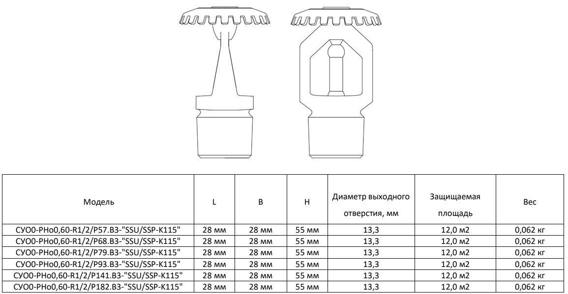 Ороситель спринклерный СУО0-РВо0,60-R1/2/Р141.В3-"SSU-K115" водяной и пенный с резьбовым герметиком