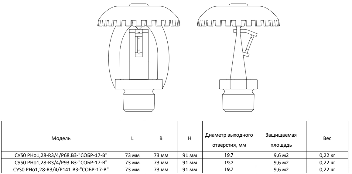 Ороситель спринклерный СУS0 РНо1,28-R3/4/Р141.ВЗ-"СОБР-17-В" быстродействующий повышенной производительности "СОБР" с резьбовым герметиком