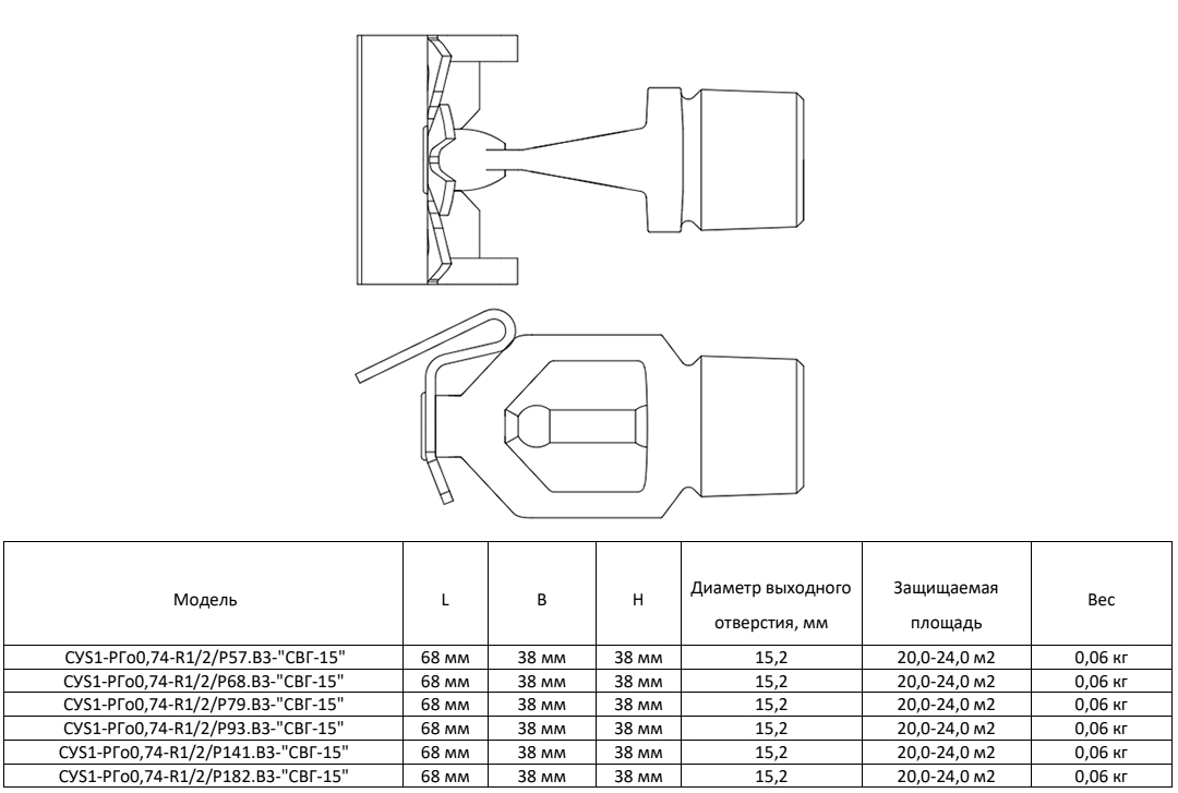 Ороситель спринклерный СУS1-РГд0,74-R1/2/Р141.В3-"СВГ-15"- белый (RAL 9016), водяной и пенный горизонтальный с резьбовым герметиком