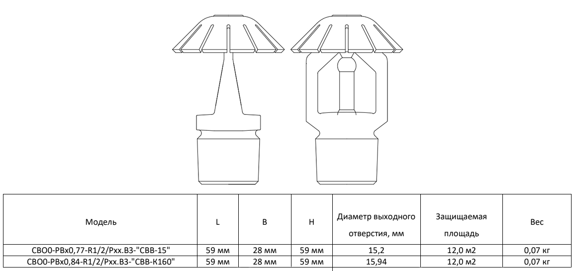 Ороситель спринклерный СВО0-РВд0,84-R1/2/Р57.В3-"СВВ-К160"- белый (RAL 9016) водяной с резьбовым герметиком колба D=5 мм