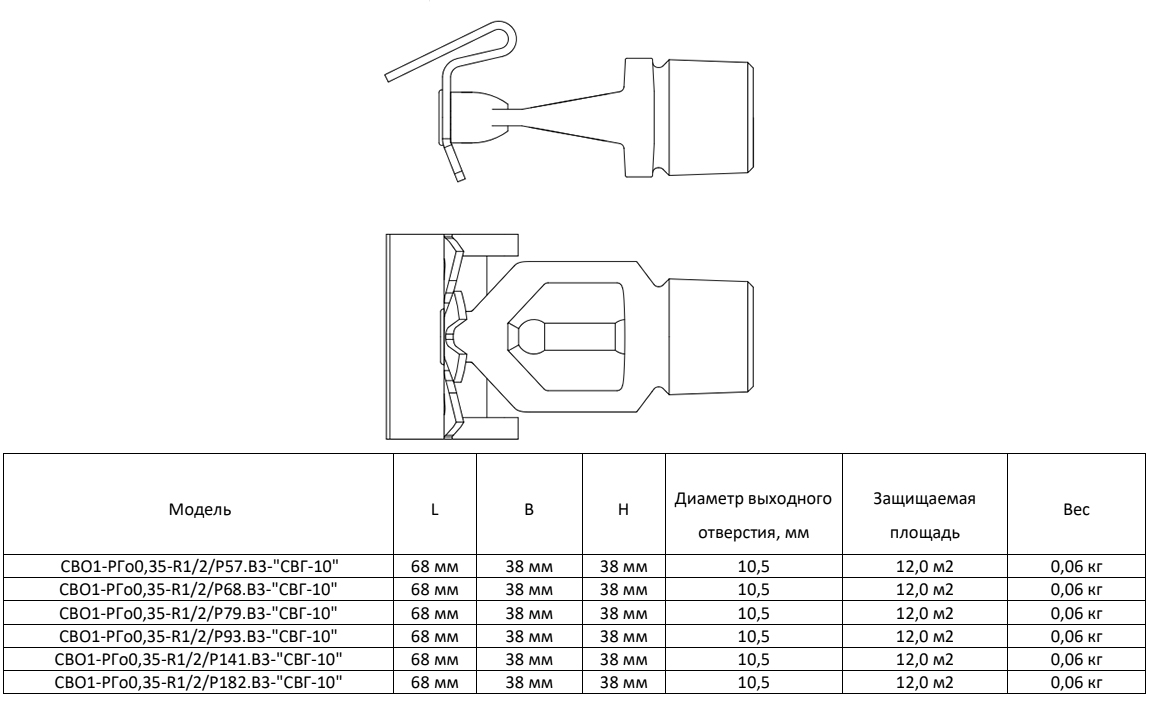 Ороситель спринклерный СВО1-РГд0,35-R1/2/Р57.В3-"СВГ-10" - белый (RAL 9016) водяной горизонтальный с резьбовым герметиком