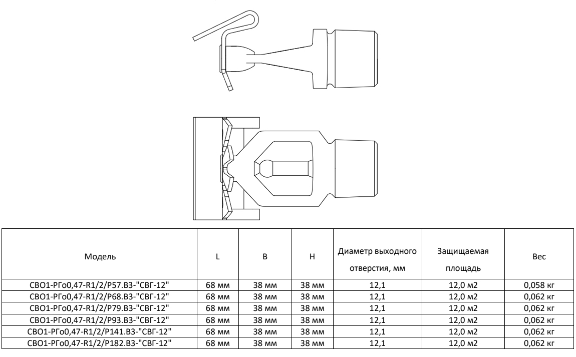 Ороситель спринклерный СВО1-РГд0,47-R1/2/Р68.В3-"СВГ-12" - белый (RAL 9016) водяной горизонтальный с резьбовым герметиком