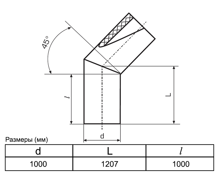Отвод 1000 мм SDR9 45° ПЭ100 сварной сегментный ПНД