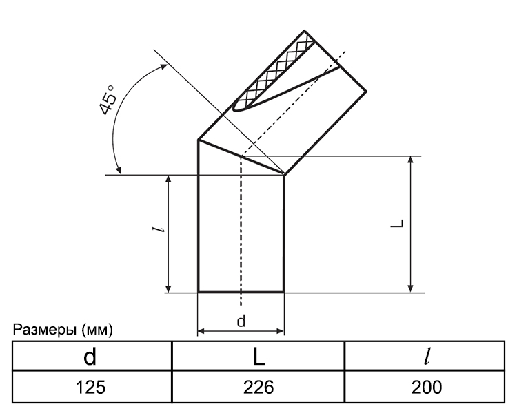 Отвод 125 мм SDR21 45° ПЭ100 сварной сегментный ПНД