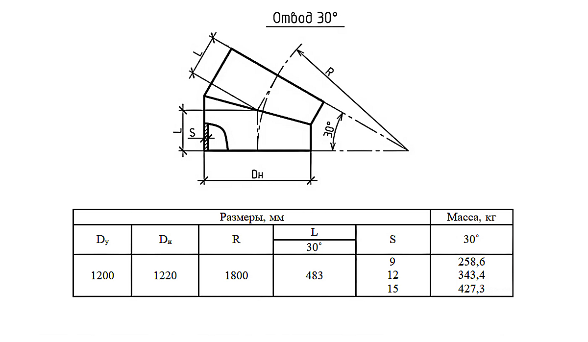 Отвод 30° 1220х15 Сталь 20 ОСТ 36-21-77 сварной секционный