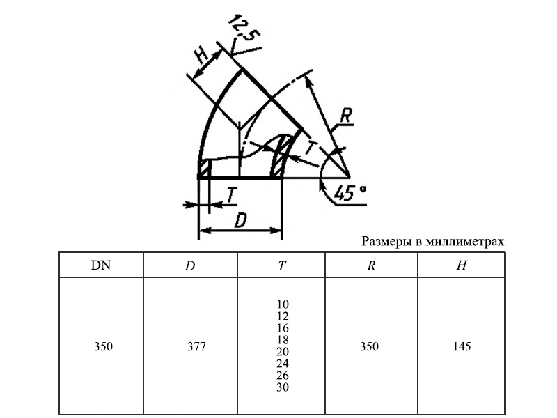 Отвод 45-377х20,0-Ст.20 ГОСТ 30753-2001 стальной бесшовный крутоизгогнутый