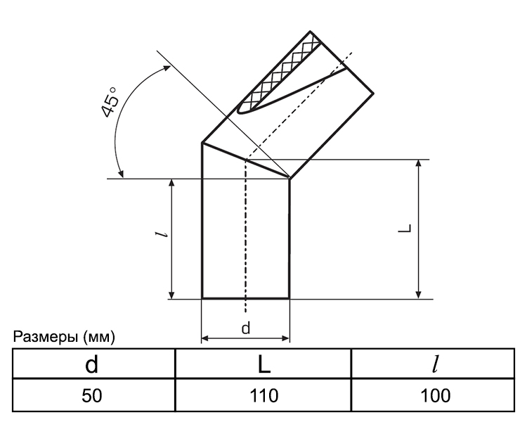 Отвод 50 мм SDR21 45° ПЭ100 сварной сегментный ПНД