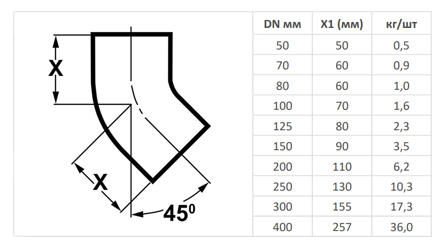 Отвод (колено) 45° SML DN 150 мм чугунный