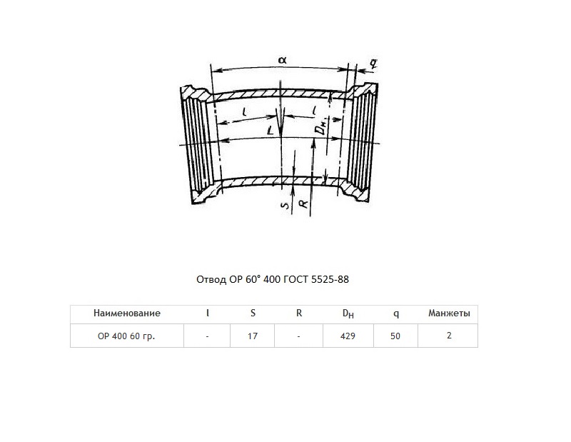 Отвод ОР Ду 400х60° ВЧШГ ГОСТ 5525-88 чугунный раструбный