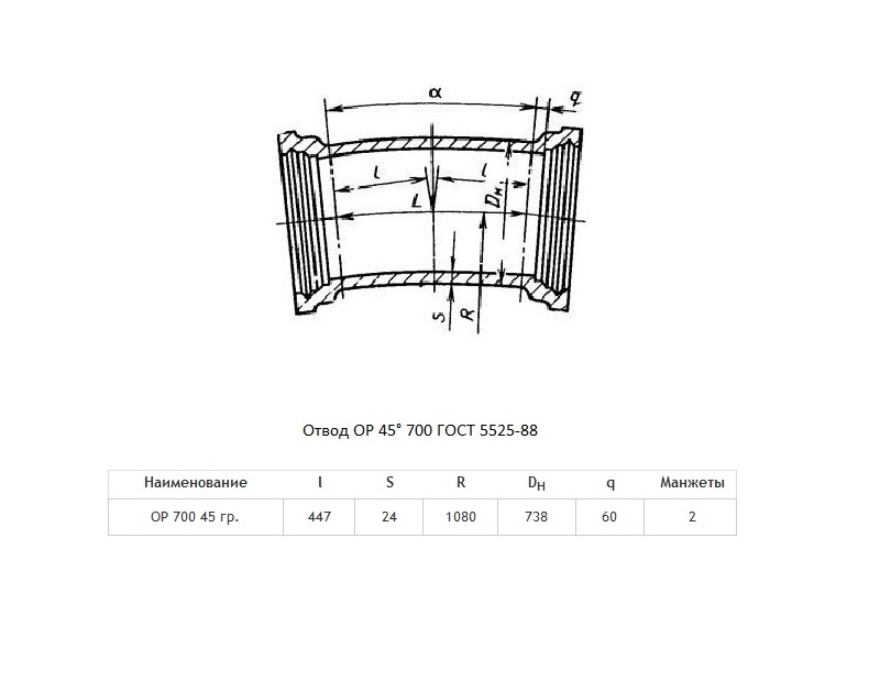 Отвод ОР Ду 700х45° ВЧШГ ГОСТ 5525-88 чугунный раструбный