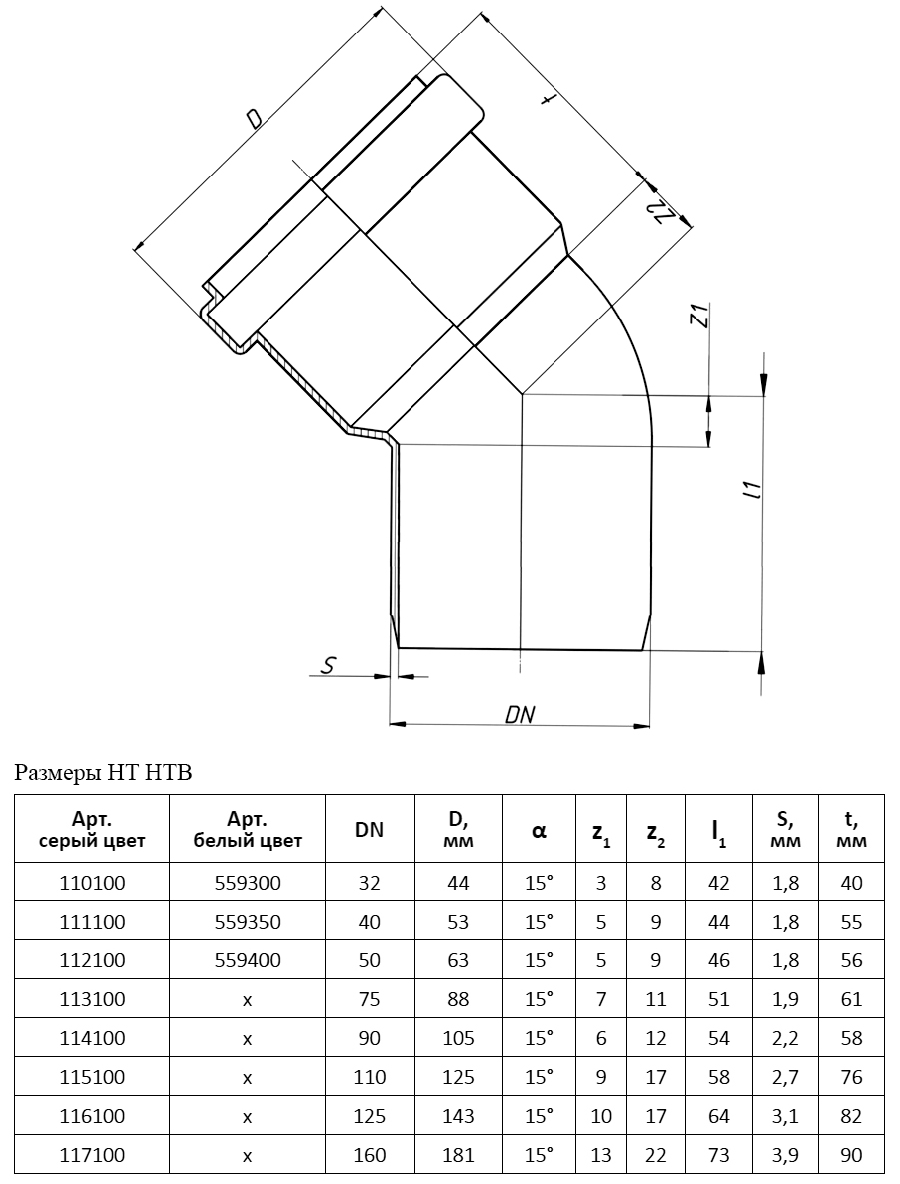 Отвод канализационный PP-H Ostendorf HT HTB DN 32х15° цвет серый