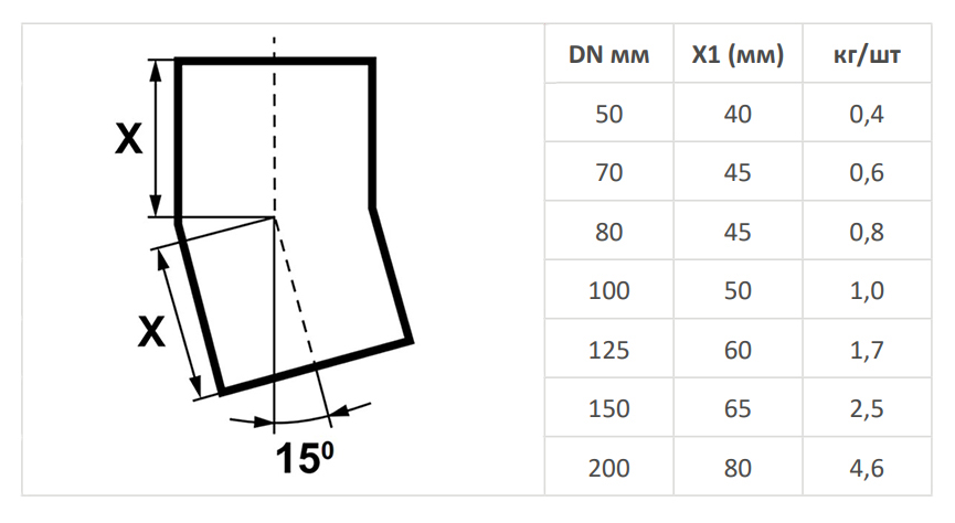 Отвод (колено) 15° SML DN 150 мм чугунный