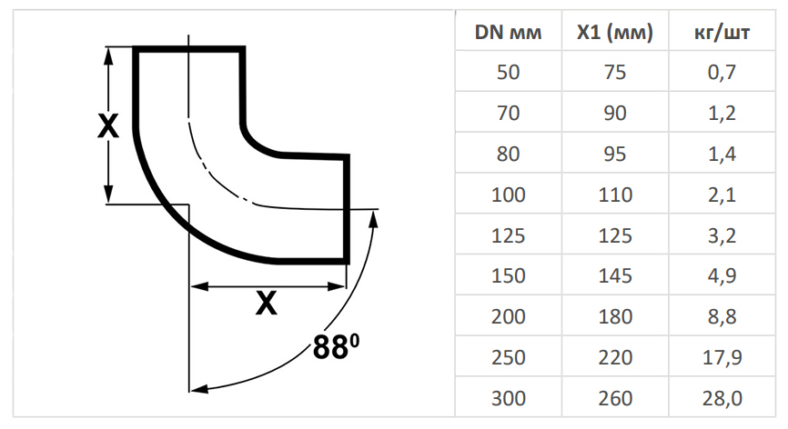 Отвод (колено) 88° SML DN 300 мм чугунный