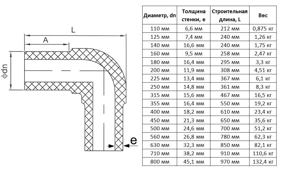 Отвод литой 180 мм 90 градусов SDR 17 ПЭ100 для ПНД труб спигот