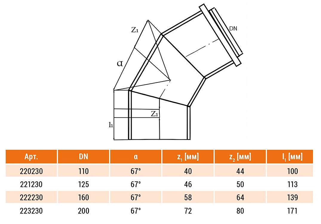 Отвод НПВХ Ostendorf KG KGB DN 160 PN 0,5 67 градусов