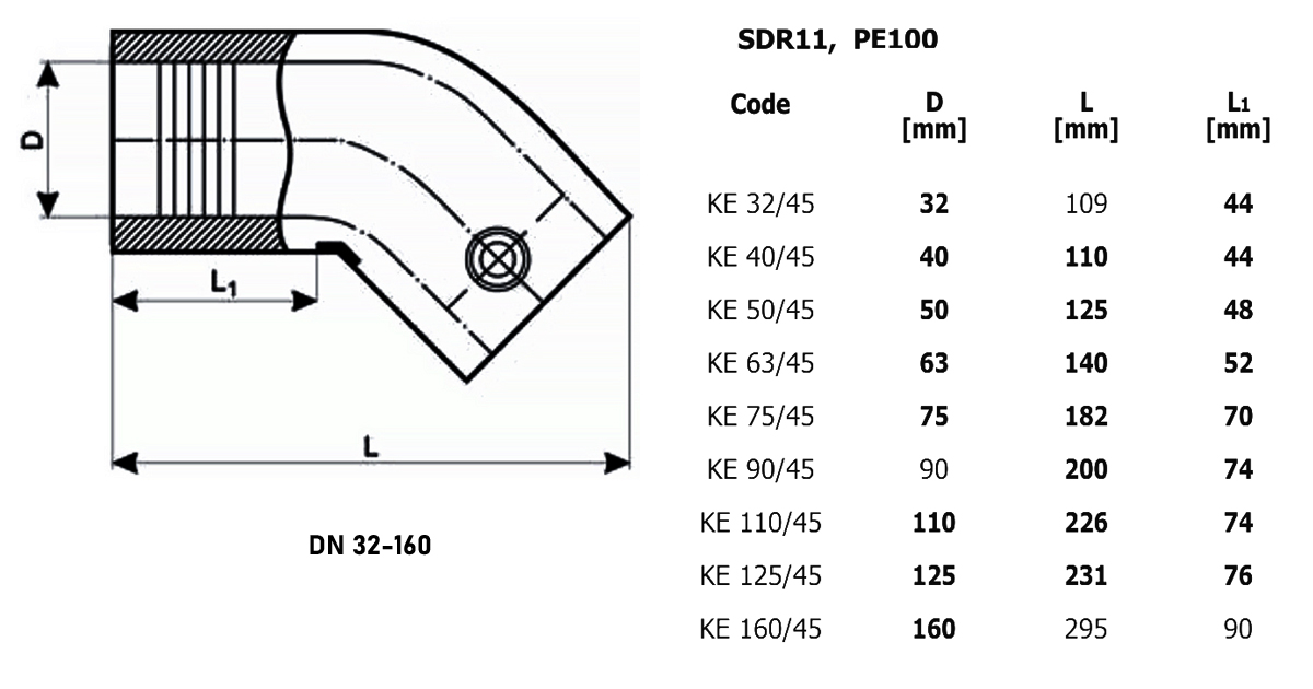 Отвод ПЭ 32x45 SDR 11 Trans-Quadro электросварной